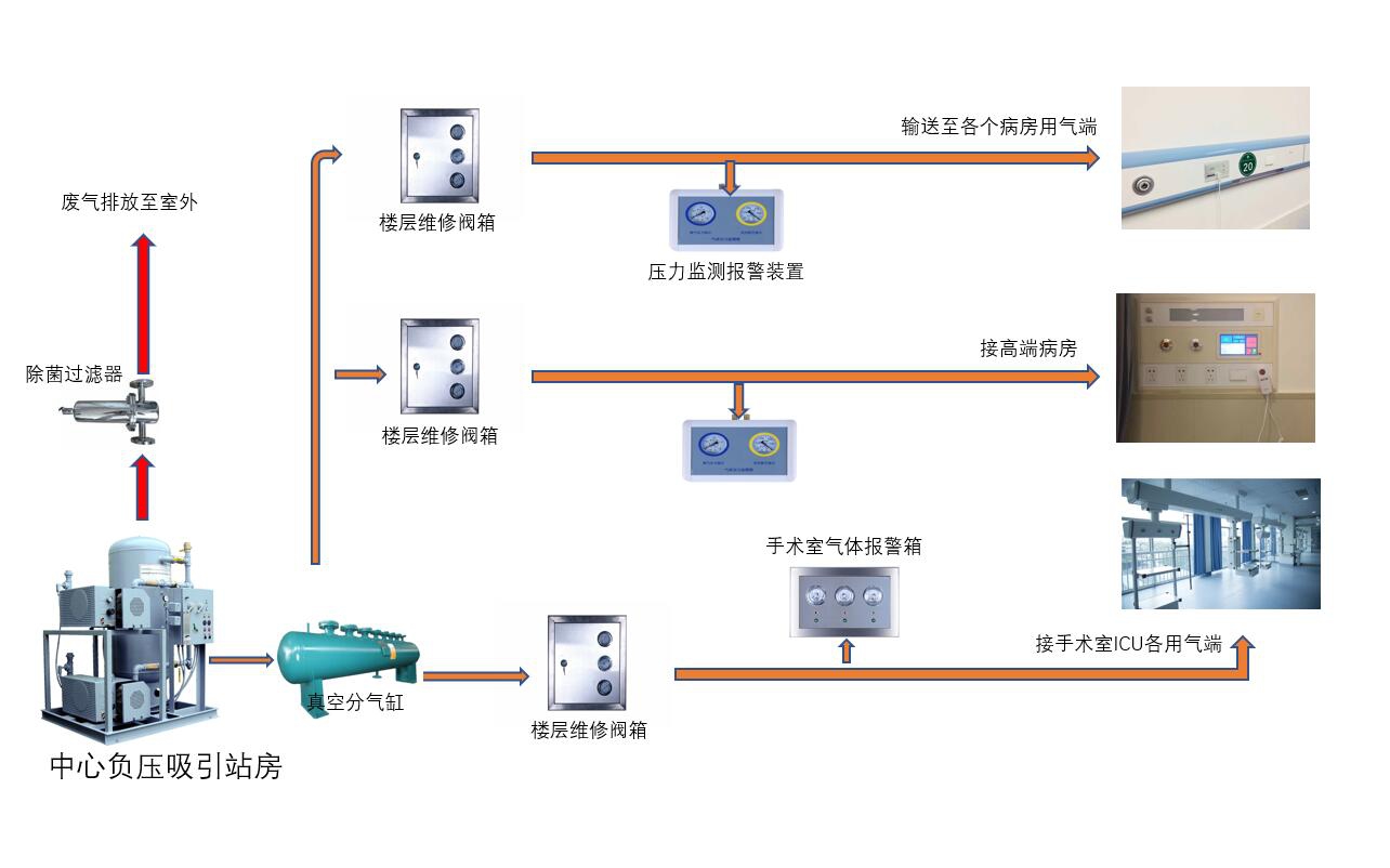 医用中心吸引系统由中心吸引站、管网系统、病房终端设备等组成。